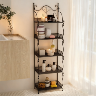 BangPang 원터치 다용도 접이식 철제선반 욕실선반 틈새선반 책장 무설치 수납선반, 5단, 블랙