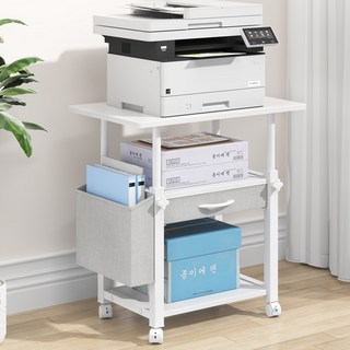 네스티파 2025신상 3단 본체 선반 이동식 프린터 선반 컴퓨터 본체 선반 거치대 데스크 확장 사이드 다용도 서랍형 프린터 테이블 철제 프린터 책상 프린트기 선반, 화이트