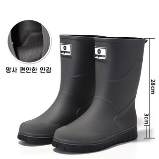 일상가 가볍고 발이편한 데일리 패션 미들 미끄럼방지 논슬립 경량 레인부츠 남성 장화