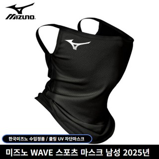 미즈노 정품 UV 웨이브 자외선차단 남성용 쿨링 마스크, 남성 FREE 블랙, 블랙, 1개