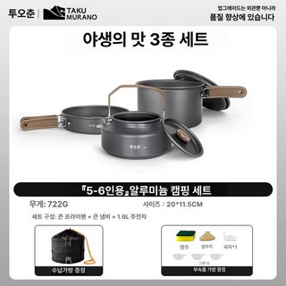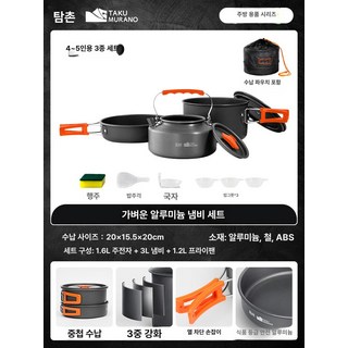 그래도아 코펠세트 야외 조리 도구 캠핑용 식기, 1개, 4-6인용 대형 냄비+1.6L