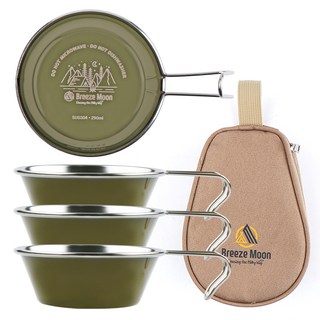 브리즈문 SUS 304 시에라 컵 300ml x 4p + 전용가방 세트, 올리브 그린, 1개