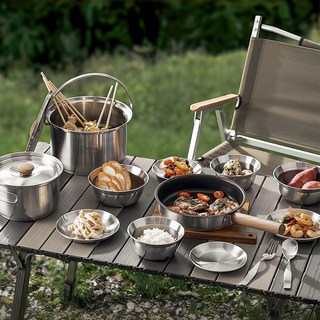 주방부터 캠핑까지! 스텐 3중 바닥 설계 냄비 프라이팬 인덕션겸용 캠핑 코펠 12종 풀세트 2~4인용, 1세트