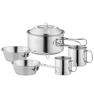 LUMANOKI 필요한것만 챙기는 1-2인용 스텐 냄비1P 시에라컵2P 캠핑컵 2P 캠핑 5P세트 보관파우치증정 코펠세트, 5종 세트 캠핑 식기 세트, 5개