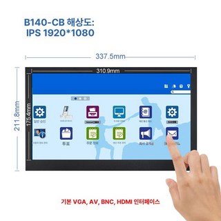 소형 모니터 미니 hdmi 디스플레이 컴퓨터 10인치 인치 고화질 포터블 보조 초소형, 패키지 2 저항 터치 버전, 14인치 IPS1920x1080, 1cm