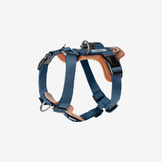 Petllow 튼튼한 강아지 인조가죽 앞섬방지 하네스, 네이비, 1개