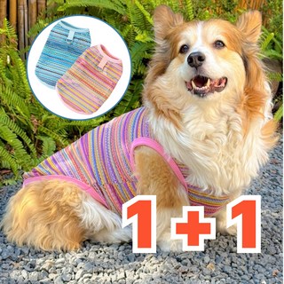슈퍼샵 애견 여름 강아지 망사 하네스 나시티 1+1 세트, 1세트, 블루+레드 (1+1)