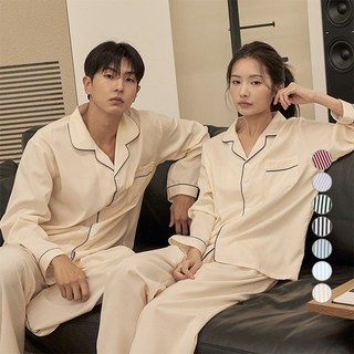 도씨 커플용 실크핏 클린 긴팔 잠옷 파자마 세트 D-3651