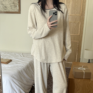 여성 긴팔 잠옷 귀여운 통기 코튼 홈웨어 세트