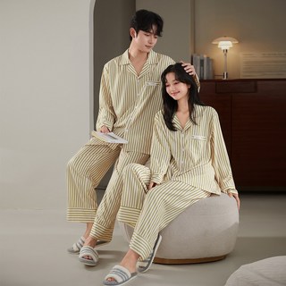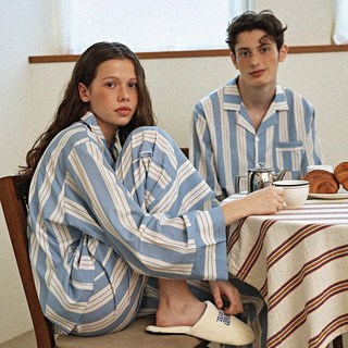 글램공감 파블로 카라형 스트라이프 커플 긴팔 잠옷 상하의 세트
