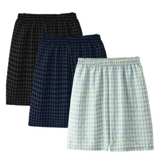 하바우 남자 5부 시어서커 와이드 체크 잠옷 반바지 3종세트