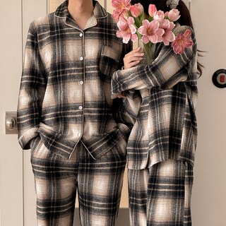 어나더디 커플용 보들 피치스킨 피치기모 긴팔 잠옷 상하의 세트