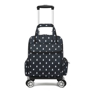 초경량 방수 미니 천캐리어 바퀴 달린 여행용 소형 캐리어 가방, 1개, 블랙 베이스 리틀 화이트 래빗 손잡이