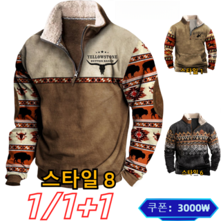 1/1+1 남자 가을 겨울 캐시미어 보온 맨투맨 봄가을 맨투맨 반집업