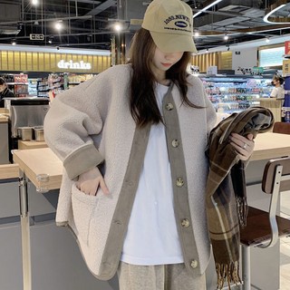 COSYEVNO 라운드넥 플리스 코트 루즈핏 도톰한 여성 가을 겨울 미디 램스울 코트