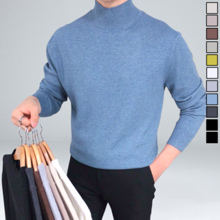 1+1세트 남성용 데일리 무지 고탄력 캐시미어 반목 목폴라 니트 긴팔티 Sevenmoon