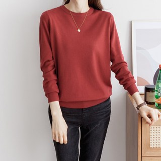 JAJU(자주) 여성용 캐시미어 블렌디드 간절기 베이직 긴팔 니트