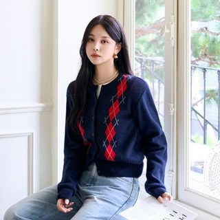 여성용 아가일 패턴 울 캐시미어 가디건 #22617