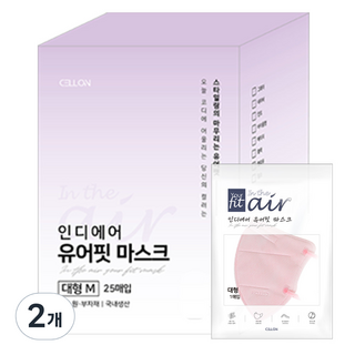 인디에어 유어핏 패션 새부리형 컬러 마스크 대형 M, 25개입, 2개, 핑크