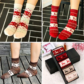 백스 여성용 중목양말 겨울순록 패턴 5켤레 세트 시보리