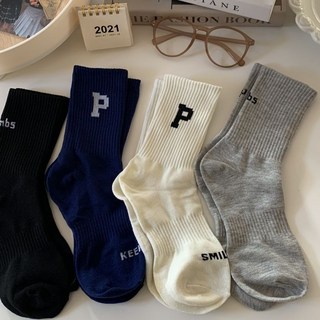 투니스 여성 레터링 자수 스포츠 중목양말 4개입