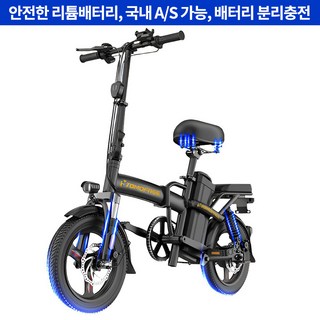 E모터스 휴대하기 좋은 접이식 전기 자전거 출퇴근 배달 대리운전 가성비전기자전거, 블랙, 하이텐강