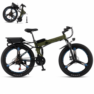 헨릭스 전기자전거 접이식 pas 출퇴근 배달 mtb 산악 로드 전동자전거 26인치 48V, Green, 하이텐강