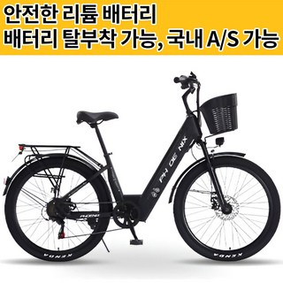 쿨바이크 MTB 전기 자전거 PAS 26인치 시마노7단 NFC 출퇴근 자토바이 전동 바이크, 블랙 6ah, 경량스틸