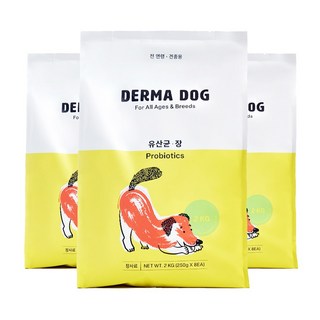 더마독 3개월령 이후 기능성 건강사료, 장건강/유산균, 2kg, 3개