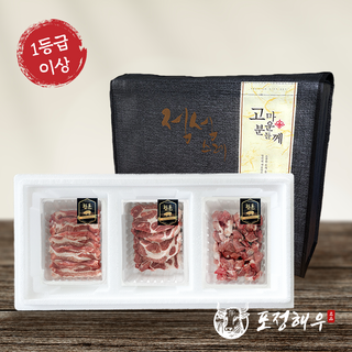 한우선물세트 1++ 소고기 구이용 최상급 추석 명절 마장동 흠뻑, 대set (등심 채끝 갈비) 1kg