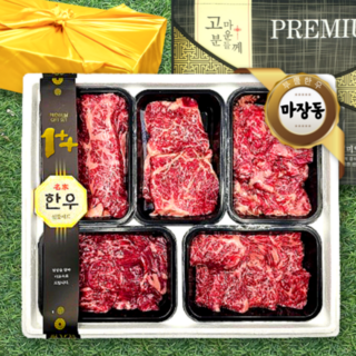 1++등급 마장동 한우선물세트 한우이츠 투뿔 소고기, 1세트, 프리미엄 5호 (일반 감사장), (등심+업진+채끝+부채+갈비)