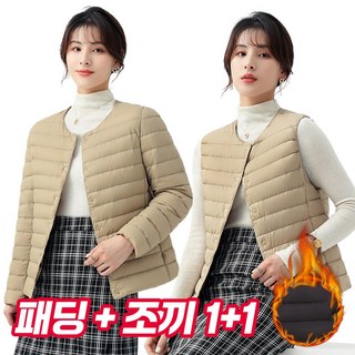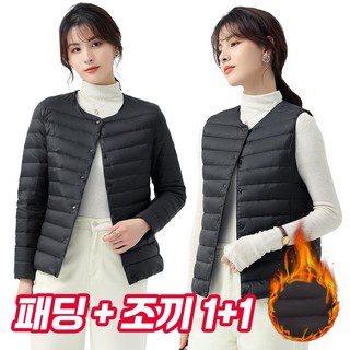 더블홈 여성 경량 얇은 패딩 라운드넥 데일리 점퍼 경량조끼 세트
