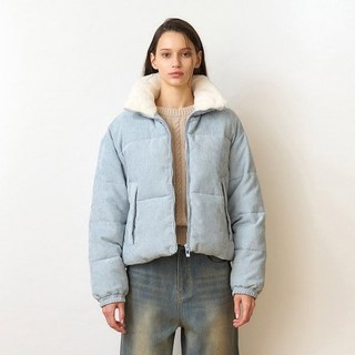 UPPERCUT 남여공용 하이넥 코듀로이 배색 패딩 점퍼