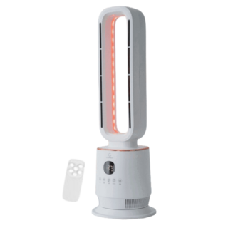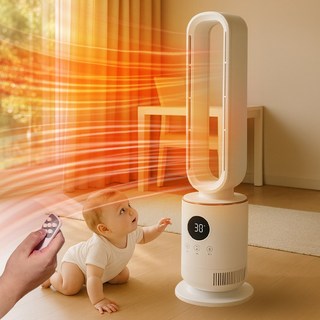 데일리공식 PTC 날개없는 온풍기 전기 히터 타워형 난방기 무드등 리모컨, 화이트