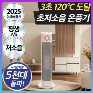 PTC 온풍기 타워형 초저소음 가정용 사무실 전기히터 가성비 캠핑용, 아이보리