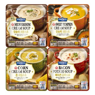 오뚜기 프레스코 스프 4종 3개씩(양송이크림+단호박크림+콘크림+베이컨감자), 12개, 180g