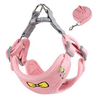 딩동펫 반려동물 벨벳 리본 하네스 + 리드줄 세트, 핑크, 1세트