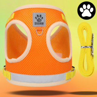 딩동펫 반려동물 올메쉬 통풍하네스 세트, 오렌지, 1세트