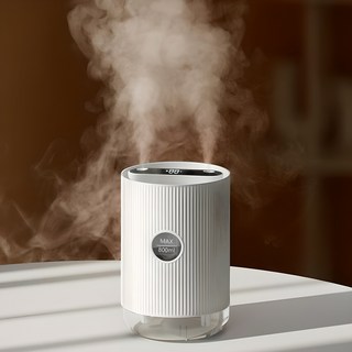 돌아라 이중 분사 가습 무선 충전식 초음파 가습기 무드등 무소음 800ml, 흰색