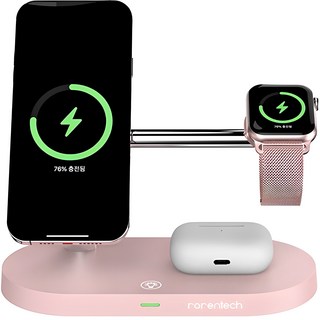 로랜텍 아이폰 애플워치 에어팟 맥세이프 고속 무선충전기, 핑크, 1개