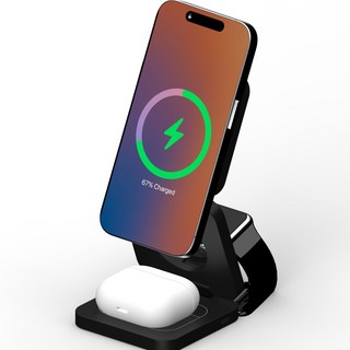 링크로 3in1 맥세이프충전기 무선충전기 핸드폰 아이폰 애플워치 접이식 멀티 고속 거치대, 1개, 매트 블랙