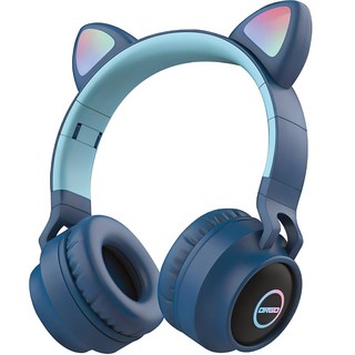 디알고 LED 라이트닝 키즈 고양이귀 블루투스 헤드폰, 다크블루, BH028C