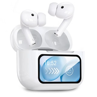 OMIIYA 터치스크린 디스플레이 무선 블루투스 이어폰 커널형 ANC 노이즈캔슬링 고음질, 화이트, T14