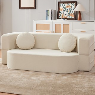 [Trikings] 1/2/3/4인용 접이식 소파베드 (프리미엄 천) 반려동물방지 리빙룸 원룸용 커버 커스텀, 1-2인용 L*W*H=150*100*70cm, 오프화이트