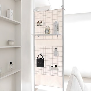 무타공 공간분리 파티션 칸막이 행거 가림막 이동식 원룸 사무실, 베이지 커튼