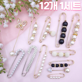 포인트 매너 옷핀 브로치 펄 믹스 10종 세트