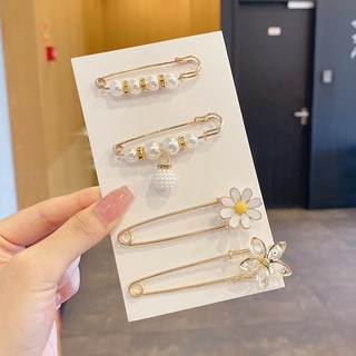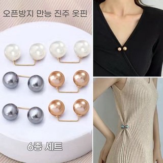 꽃소담 [6종 세트] 매너 옷 여밈 진주 옷핀 오픈방지 패션 포인트 브로치 허리둘레 조절핀 고정핀 MQ901