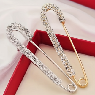 고급 큐빅 장식 멀티 브로치형 옷핀 바지 허리 조절용 버튼 니트 스카프 장식 겸용 패션 액세서리 핀 2종세트
