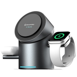 신지모루 Qi2 3in1 무선충전 맥세이프 M 윙 터보 애플 워치 거치대, 블랙메탈, 1개