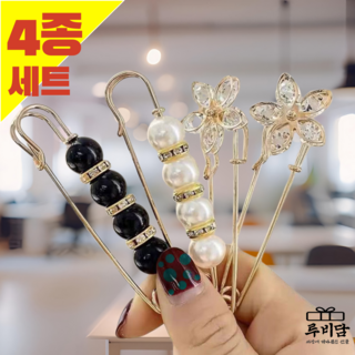 루비담 패션 진주 큐빅 빅옷핀브로치 세트, 옵션3) 드롭진주브로치, 4개